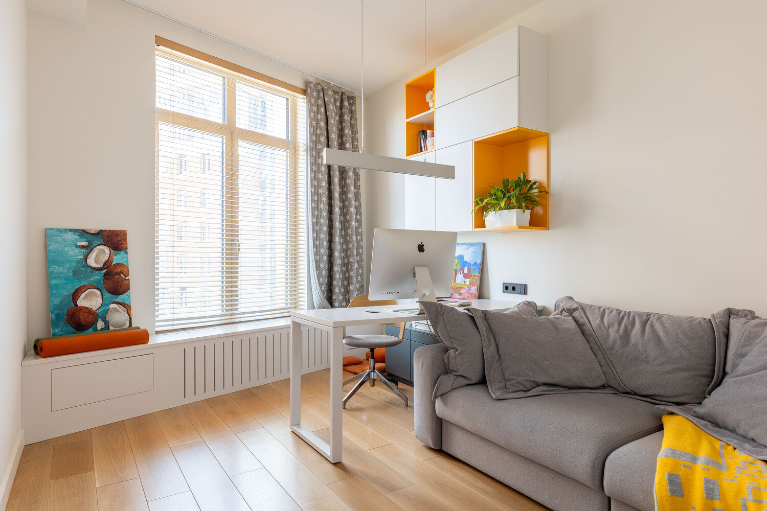 Современная квартира с желтыми акцентами для семьиДизайн