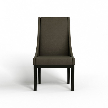 Стильный стул на высоких тонких ножках. Прямая высокая спинка. Плавные