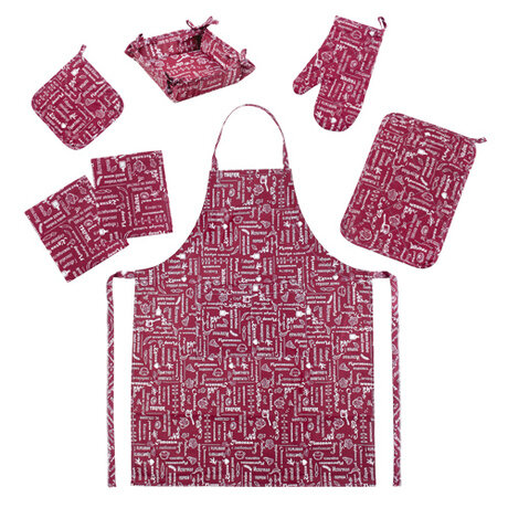 Название: | Набор для кухни 'Правила кухни' 7 предметов (прихватка-рукавичка, прихватка, текстильная ваза, подставка под горячее, фартук, полотенце - 2 шт), рогожка, 100 % хлопок, 'Вишня' |