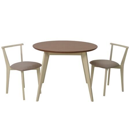 Комплект идеально впишется в кухню, столовую зону или небольшую гостиную от 9 м². Стол высотой 75 см соответствует эргономическим стандартам, а стулья с велюровой обивкой обеспечивают комфорт во время длительных посиделок. Двухцветная гамма (коричневая столешница и каркас цвета слоновой кости) легко сочетается с большинством интерьерных решений.Технические характеристики: