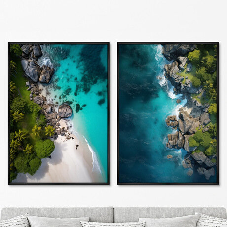 Хотите создать в своем доме атмосферу тропического отдыха? Этот набор из двух картин с видом сверху на лазурную воду, белоснежный песок и скалистый берег перенесет вас на райский остров каждый раз, когда вы взглянете на стену.Три главных преимущества: