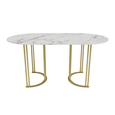 Обеденный стол овальный Violur 160 с металлическим золотым подстольем и столешницей белый мрамор