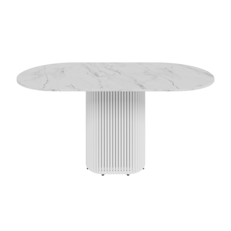 Обеденный стол овальный Trubis Wood 160 с металлическим белым подстольем и столешницей белый мрамор