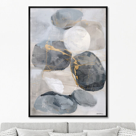 Репродукция картины «Природный Камень, No 2»: абстрактная графика с золотыми акцентами для гостиной от 15 м²