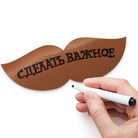 Магнитные усы для записей - это одновременно и большой магнит, и компактная доска для записей. Прикрепите их на холодильник и оставляйте записки, напоминалки, послания любимым, философские цитаты и умные мысли на самом видном месте. В комплекте специальный маркер, который прекрасно пишет и также хорошо стирается. Сама памятка легко примагничивается и снимается, а если что, в комплекте есть держатель, который позволит примагнитить её к неметаллической поверхности.