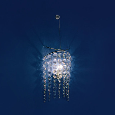 Настенный подвесной светильник выполнен из металла, покрытого золотом 24К. Светильник декорирован подвесками с прозрачными крупными кристаллами Cut. Количество лампочек: 1.